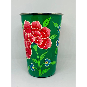 Gobelet inox (ref G6) Fond vert fleur rose- Inde