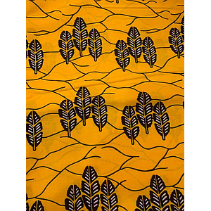 Tissus Wax - Motif feuilles fond jaune