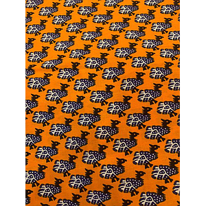 Tissus Wax - Motif poules bleues fond orange