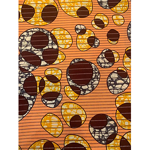 Tissus Wax - Motif fond rose bulles marron / beige