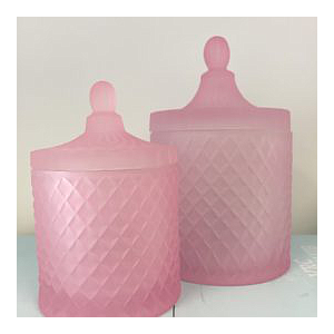 Pot pour bougie en verre rose sablé avec relief avec couvercle (230ml)- Australie