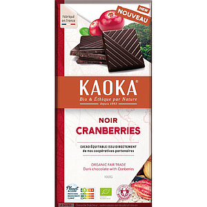 Tablette de chocolat noir à 58% aux cranberries - Bio - Fair trade - Kaoka - 100g
