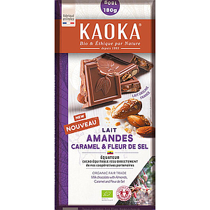 Tablette de chocolat au lait 40% Amandes et caramel et fleur de sel - Bio - Fair trade - Kaoka - 180g
