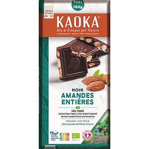 Tablette de chocolat noir 66% Amandes entières - Bio - Fair trade - Kaoka - 180g