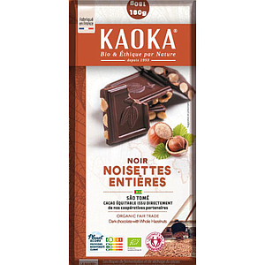 Tablette de chocolat noir 66% Noisettes entières - Bio - Fair trade - Kaoka - 180g