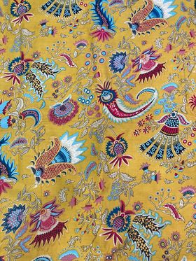 Voile de coton -Fond moutarde fleurs- Inde